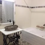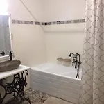 Die Varhegy Vendeghaz bietet einen Patio und eine Sitzecke mit einem Bügeleisen/Bügelbrett und einer Klimaanlage sowie Möbeln wie einem Schreibtisch. Gästen stehen auch ein Flachbildfernseher mit Satellitenkanälen zur Verfügung. Das Badezimmer ist mit einer getrennten Toilette, einer Badewanne und einer Dusche ausgestattet und verfügt auch über einen Haartrockner und Badelaken.